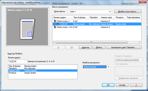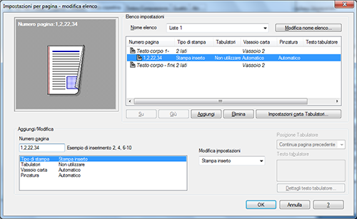 Per stampare le copertine dei capitoli su un tipo di carta diverso, selezionare la casella di controllo [Impostazioni per pagina] sulla scheda [Modo copertina].