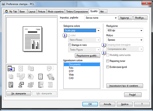 L'impostazione della scala di grigio sarà applicata ad ogni utilizzo della stampante, con qualsiasi software applicativo.