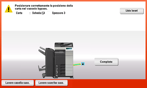 Se non è possibile fare clic su [Completo], togliere le buste o cartoline caricate nel vassoio bypass e ricaricarle, quindi premere [Completo].