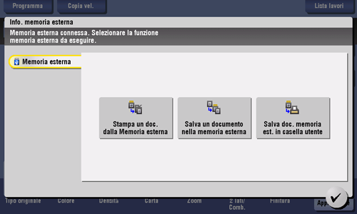 Lo stato autenticazione può essere [Attivo(MFP)], [Attivo(Server Est.)], [Attivo(MFP) + Attivo(Server Est.)], [Attivo(Server avanzato)] oppure autenticazione [Attivo(MFP) + Attivo(Server avanzato)]. Per ulteriori dettagli, contattare l'amministratore di questa macchina.