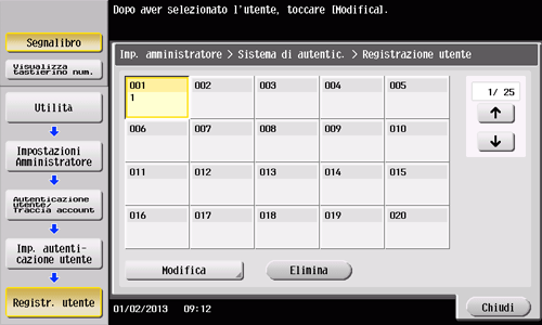 Selezionare il numero di registrazione dell'utente considerato, quindi premere [Modifica].