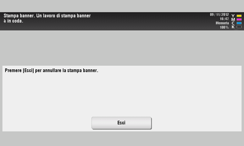 Se si riceve un lavoro di stampa con un'impostazione carta di un formato non banner mentre la macchina è in attesa di stampare su banner, il lavoro sarà messo in coda.