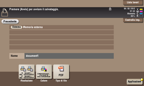 Si possono modificare le impostazioni per le opzioni [Risoluzione], [Colore] e [Tipo di file].