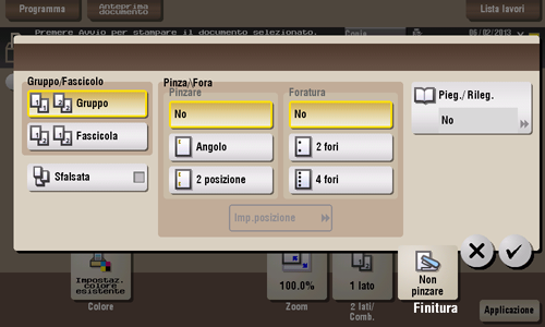 La pinzatura centrale è abilitata per la finitura tipo opuscolo.