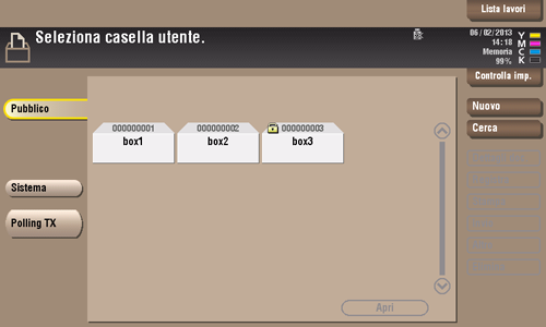 Il tasto scorciatoia appare sulla schermata principale del modo Box.