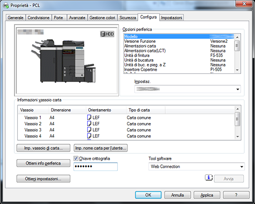 Nella scheda [Configura], controllare la [Chiave crittografia], quindi inserire la frase chiave di crittografia impostata su questa macchina.