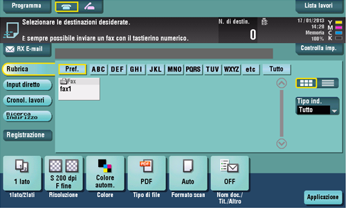 È possibile immettere direttamente una destinazione di inoltro facendo clic sull'area di immissione o sull'icona della tastiera, oppure selezionarne una tra le destinazione registrate nella macchina facendo clic sull'icona elenco.