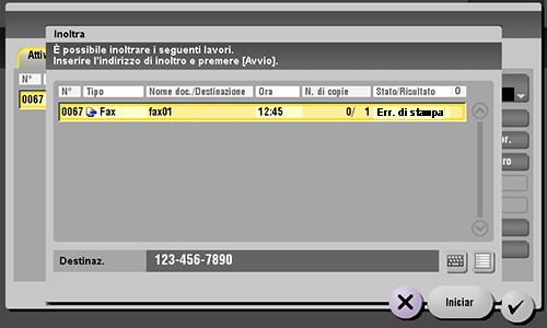 Selezionare il lavoro da inoltrare, specificare la destinazione, quindi fare clic su [OK].