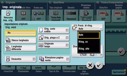 [ON]/[OFF] | Selezionare [ON] per specificare Originale libro. |