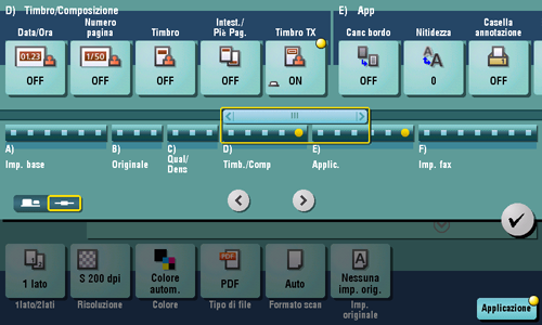 [ON]/[OFF] | Selezionare [ON] per stampare un timbro. |