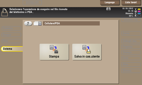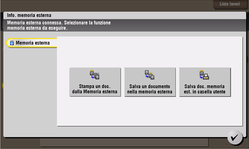 È inoltre possibile stampare i file selezionando il modo Funzionamento casella utente e premendo [Sistema] - [Memoria esterna].