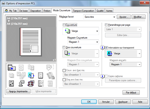 Dans l'onglet [Mode Couverture], cochez la case [Intercalaire sur transparent].
