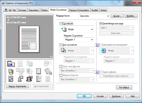 Créez à l'avance une liste qui spécifie les réglages papier et d'impression pour chaque page. Lorsque vous imprimez sur du papier inséré, sélectionnez la liste que vous voulez appliquer à l'impression.