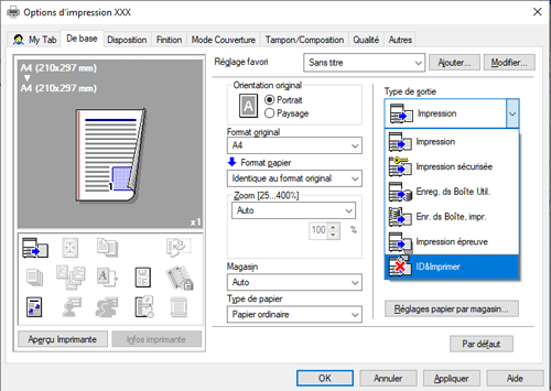Dans [Type de sortie], sélectionnez [ID&Imprimer].