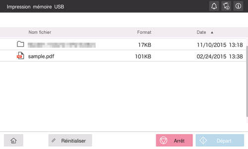 Appuyez sur [Impression mém. USB] sur l'écran d'accueil.
