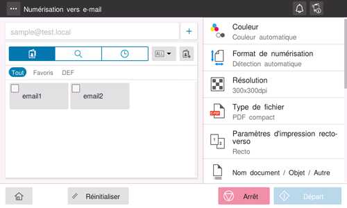 Appuyez sur [Numériser vers e-mail] sur l'écran d'accueil.