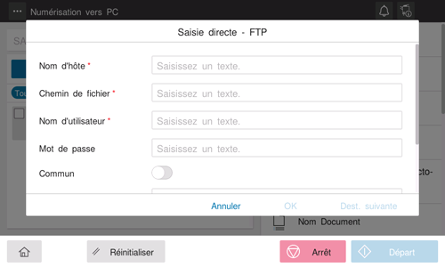Entrez directement les informations de destination.