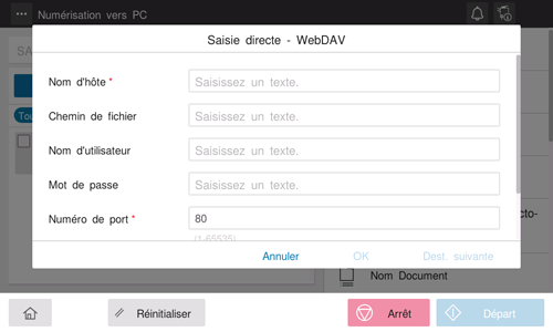 Entrez le nom de dossier de l'hôte spécifié dans [Nom d'hôte] (127 octets max.).