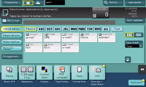 Pour des détails sur l'affichage de l'écran, voir [Afficher l'écran Numérisation/Fax] .