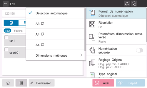 Lorsque le format de l'original n'est pas détecté correctement, spécifiez le format de l'original à numériser.