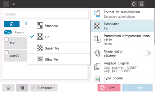 [Ultra fin] | Sélectionnez cette option pour numériser un original qui exige un haut niveau de qualité image. |