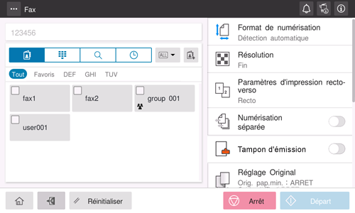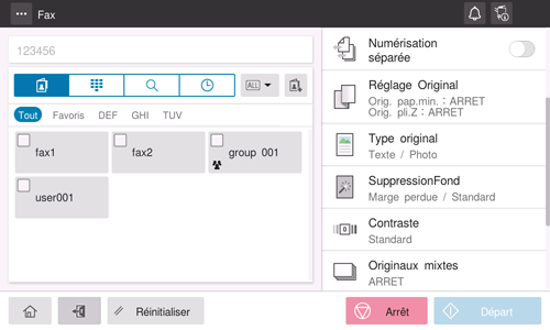 [Fin] | Sélectionnez cette option pour numériser un original standard. |