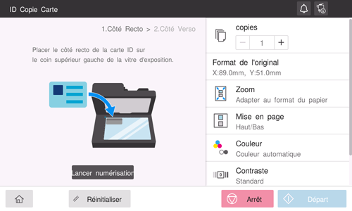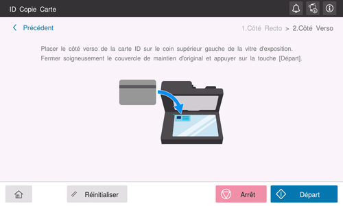 Utilisez la touche Départ pour numériser le verso de la carte et démarrez la copie.