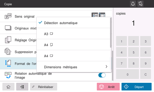 Lorsque le format de l'original n'est pas détecté correctement, spécifiez le format de l'original à numériser.