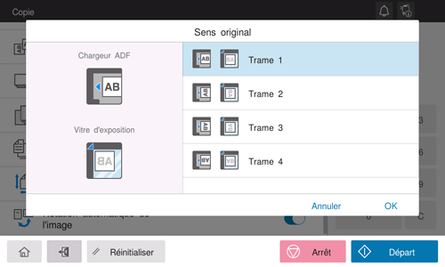 - Spécifier le sens de chargement de l'original (Orientation original)