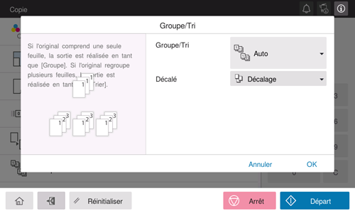 [Groupe/Tri] | Sélectionnez le mode d'éjection des copies.