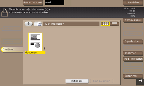 Cette section décrit comment sélectionner et imprimer un fichier de la boîte utilisateur ID et impression.