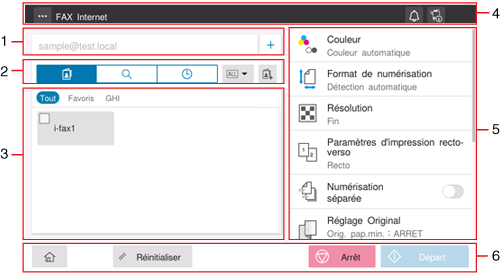 Si vous appuyez sur [Fax Internet] sur l'écran d'accueil, l'écran principal de Fax Internet s'affiche.