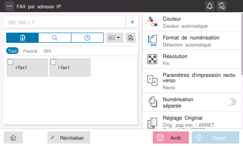 Appuyez sur [Fax par adresse IP] sur l'écran d'accueil.