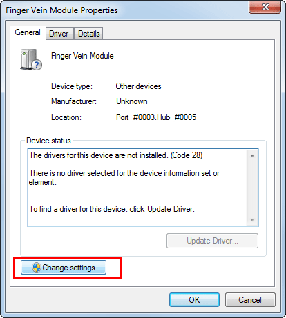 Faites un clic droit sur le nom de périphérique ou sur [Périphérique inconnu] de l' unité d'authentification biométrique affiché dans la catégorie [Non spécifié], puis cliquez sur [Propriétés].