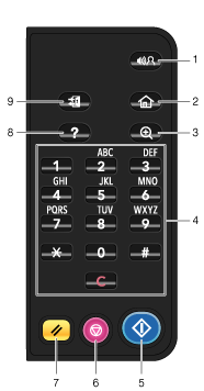 6 | Arrêt | Appuyez sur cette touche pour arrêter temporairement une tâche active de copie, de numérisation ou d'impression.