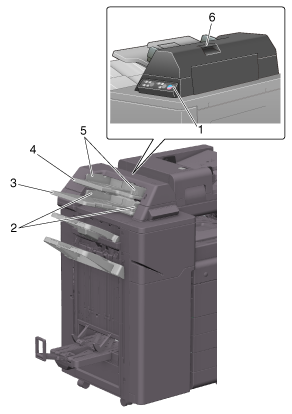 1 | Post Inserter Control Panel | Operate this panel to manually use the finisher. For details on how to operate the post inserter, refer to [Keys on the Control Panel] . |