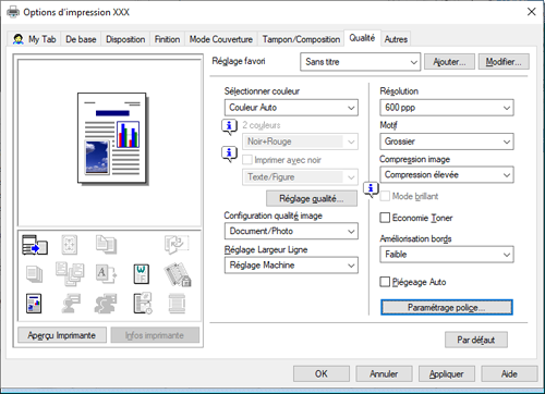 Dans l'onglet [Qualité], cliquez sur [Paramétrage police...]
