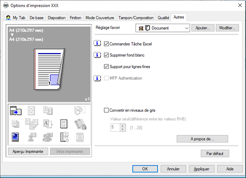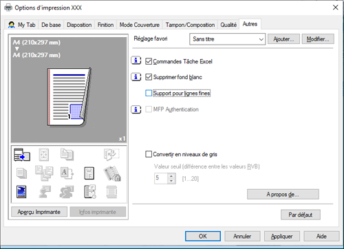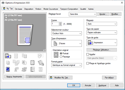 Q. Puis-je changer l'écran des réglages d'impression du pilote en un élément dédié ?