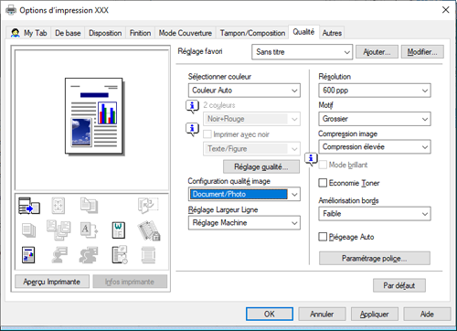 Sous [Réglage qualité d'image] de l'onglet [Qualité], sélectionnez le type de document à imprimer.