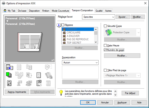 Sous l'onglet [Tampon/surimpression], cochez la case [Numéro de page], puis cliquez sur [Modifier].