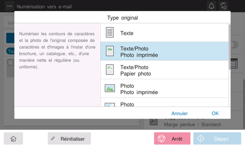 Sélectionnez [Type original] et ensuite la qualité d'image conforme au contenu de l'original à numériser.