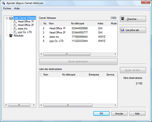 Vous pouvez enregistrer jusqu'à 100 destinataires.