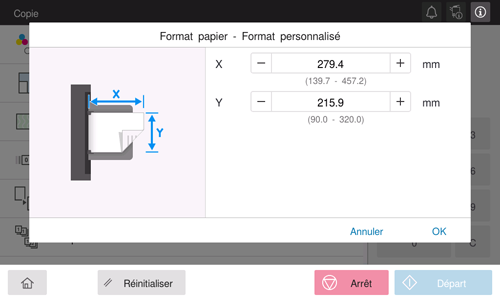 Dans [Format papier], appuyez sur [Format personnalisé].
