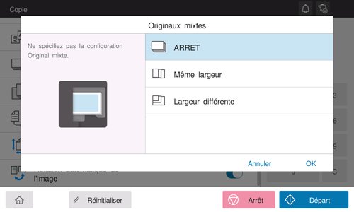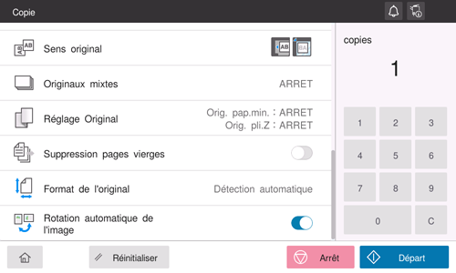 Dans [Rotation image automatique], sélectionnez l'élément en fonction de l'orientation actuelle du papier et de l'original, puis appuyez sur [OK].