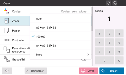 Procédure : lorsqu'un taux de zoom est spécifié manuellement pour la copie