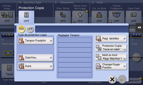 Appuyez sur [OUI] et configurez les différents éléments pour la fonction de protection de copie.