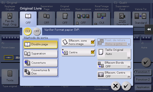 Appuyez sur [OUI], sélectionnez [Double page], puis appuyez sur [Effacer Centre].
