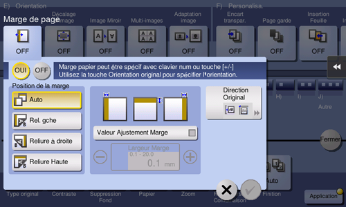 Appuyez sur [OUI] et configurez les différents éléments pour les marges de page.