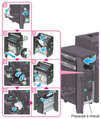 Sections inside the finisher prone to paper jams vary depending on the settings for [Finishing].