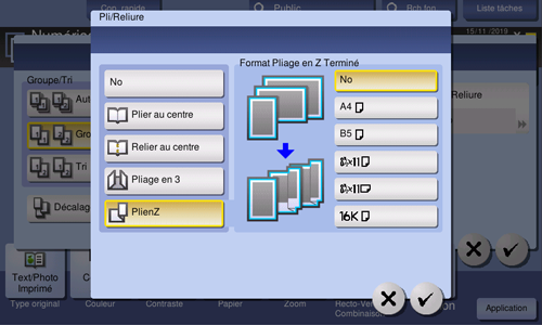 Z-folds the long side of a copied sheet before feeding it out. This option is available when you print paper of 11 17